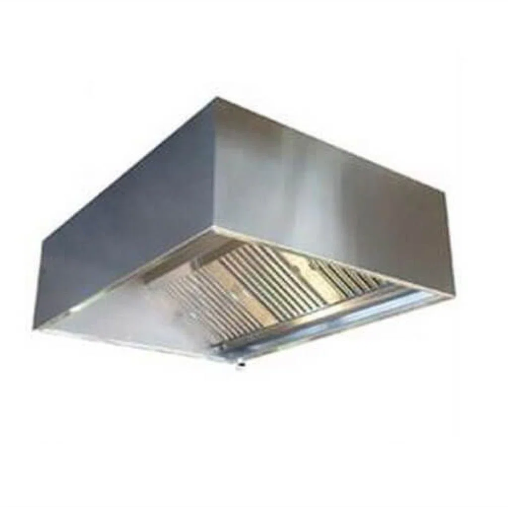 Emfang i kasseform opfanger mere opstigende damp og røg end traditionelle skrå emfang. Prisen inkluderer lys og filtre.