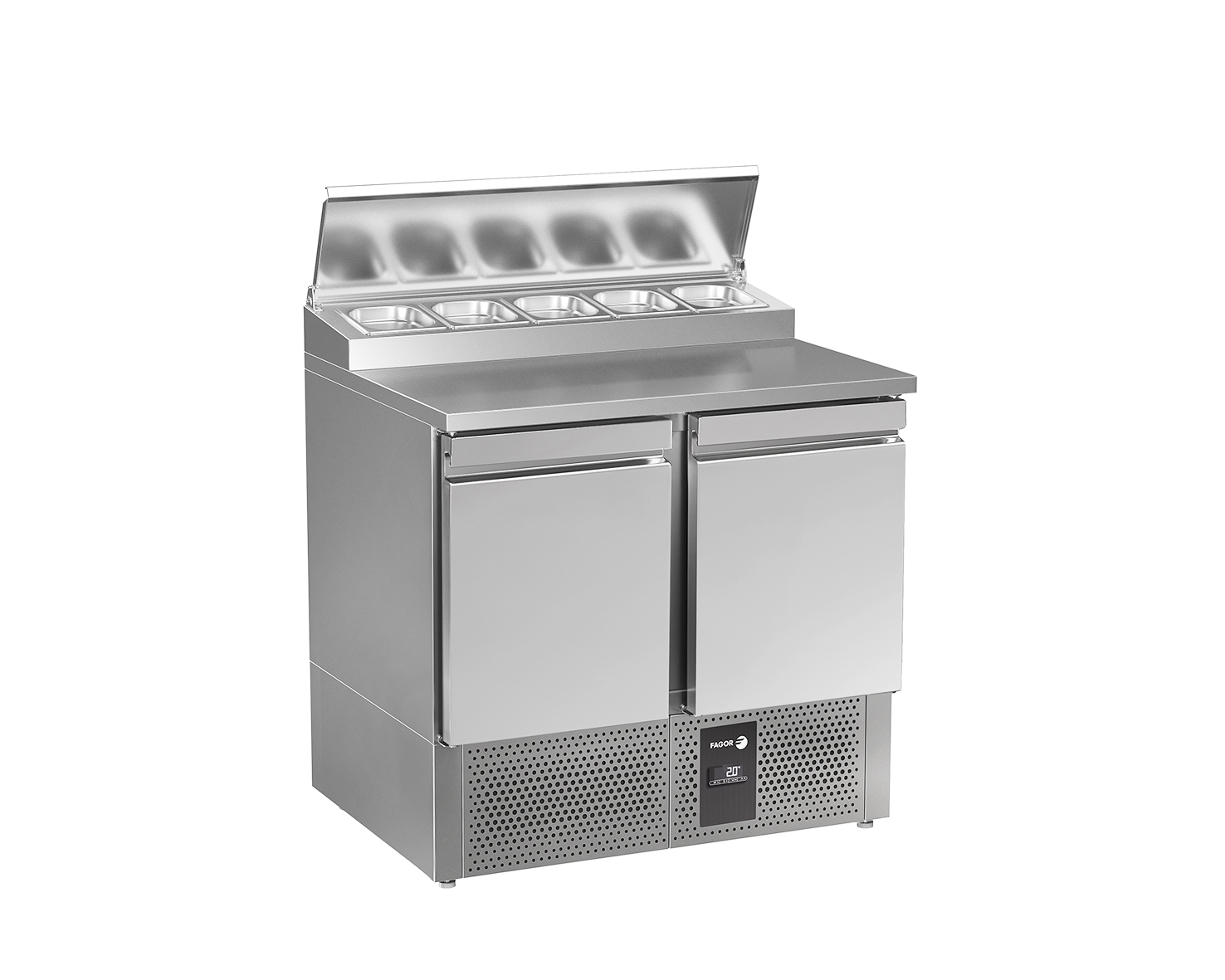 Kølebord fra Fagor med kompressor under bunden.