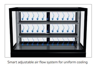 – Ensartet kølefordeling på hver hylde gennem luftflow system